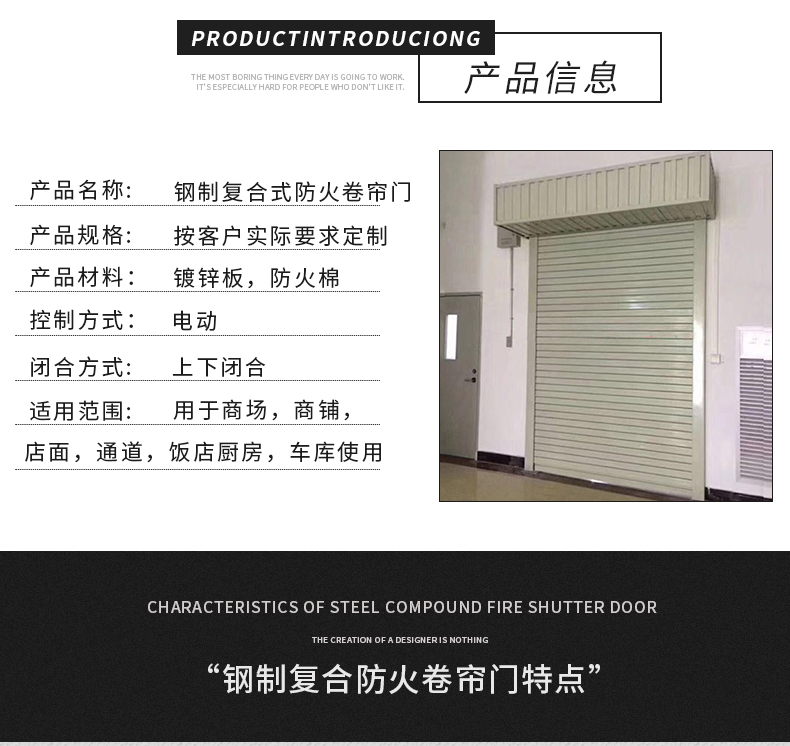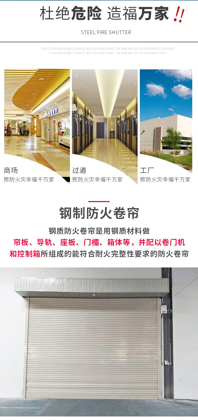 防火卷簾門是一種適用于建筑物較大洞口處的防火、隔熱設(shè)施,產(chǎn)品在設(shè)計安裝上起到了一定的作用技術(shù)。防火卷簾門廣泛應(yīng)用于工業(yè)與民用建筑的防火隔斷區(qū),能有效地阻止火勢蔓延,保障生命財產(chǎn)安全,是現(xiàn)代建筑中不可或缺的防火設(shè)施。
